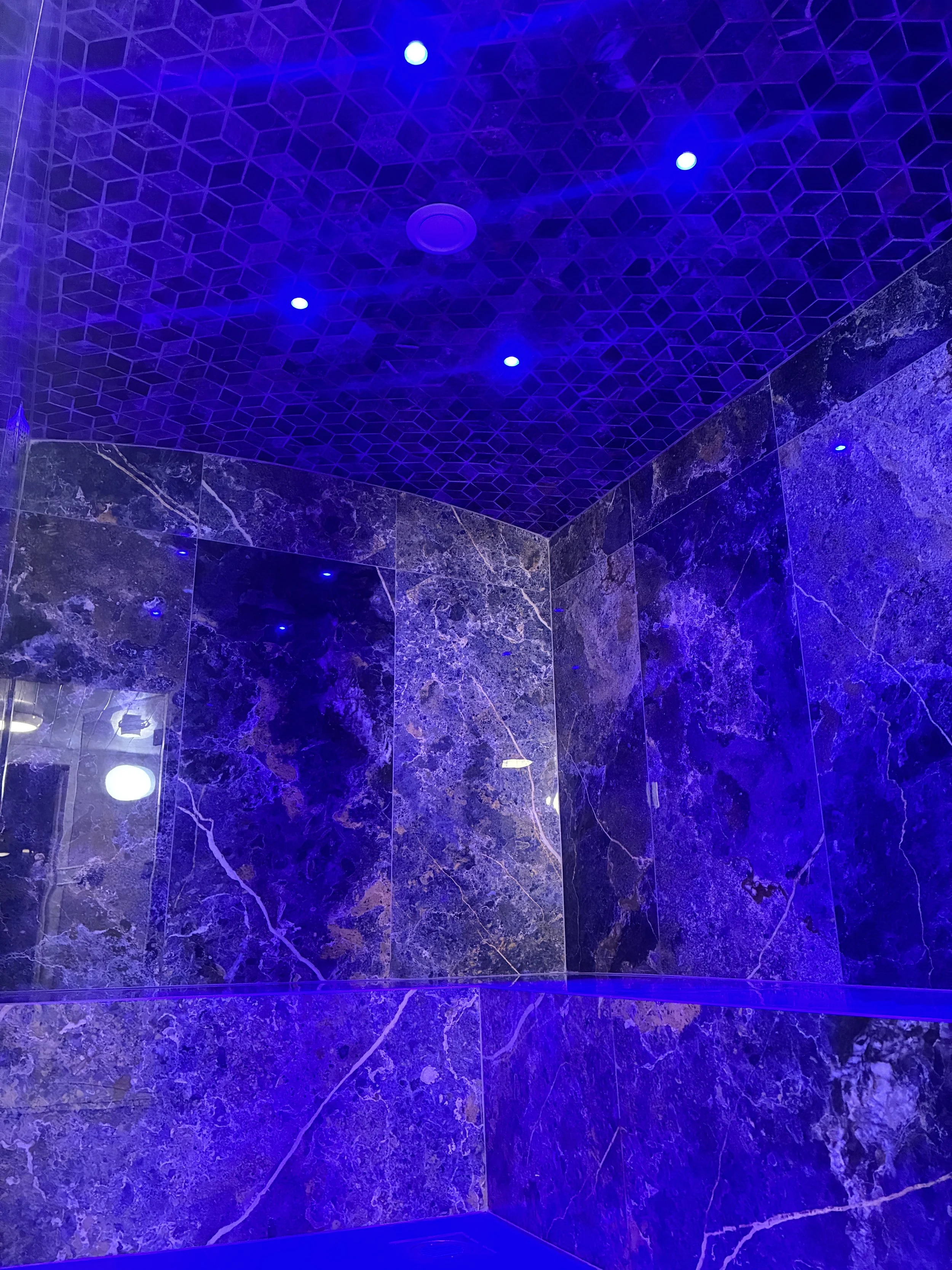The main differences between saunas and steam rooms are temperature and humidity. Saunas are dry heat. Our sauna is kept at approximately 86 degrees Celcius, with a humidity level of around 10%. On the other hand, the temperature in a steam room is generally around 45 degrees Celcius, with almost 100% humidity. Dry saunas stimulate sweating, while the steam room reduces the ability to sweat.